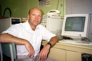Снято в отделе АСУ Сангвиса в 1995г. На экране компьютера — структура корпоративной сети ГМПО «САНГВИС»