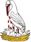 Согласно легенде, пеликан разорвал себе грудь, чтобы вскормить своей кровью детёнышей