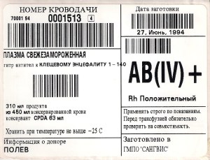 После завершения лабораторных тестов на продукты крови, признанные годными к переливанию их пациентам, наклеивалась типографская цветная марка с группой крови, сам факт наличия которой служил одним из признаков того, что продукт прошел все необходимые контрольные тесты.
