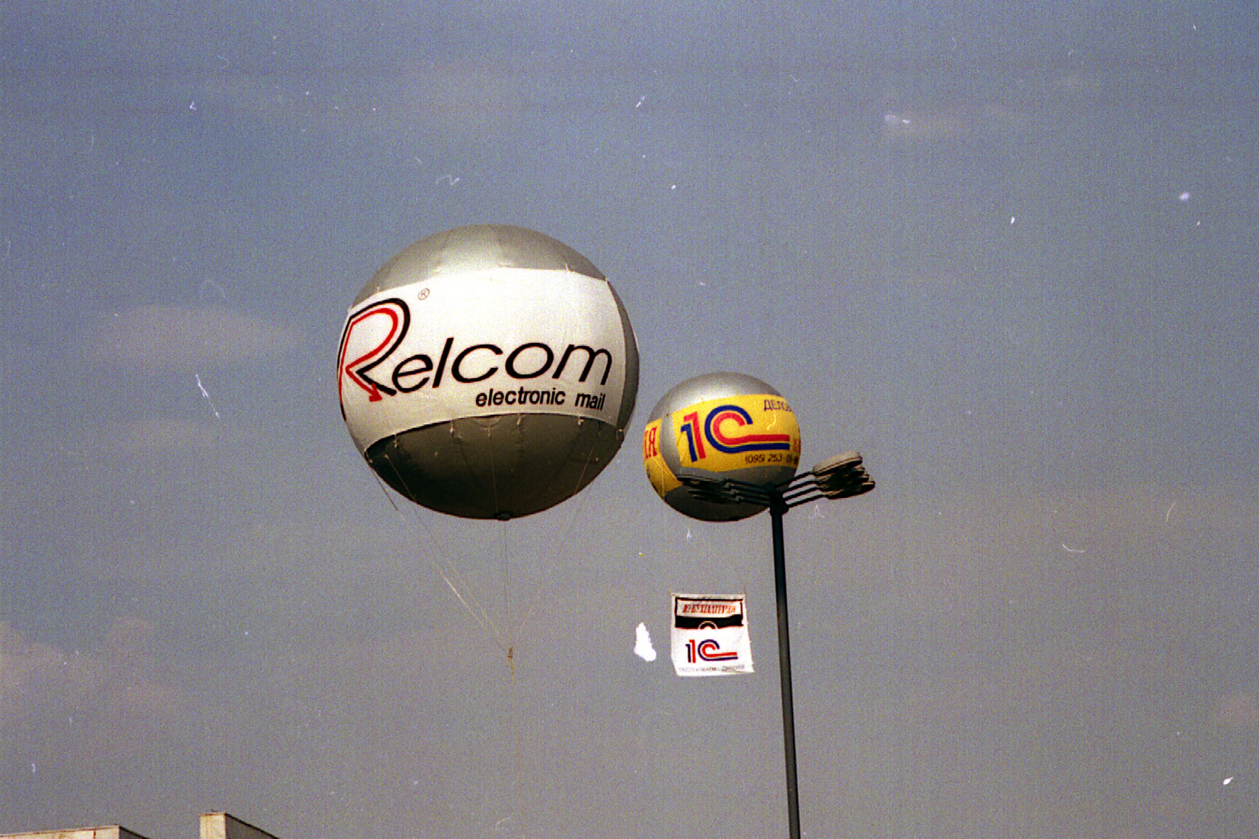 Это была одна из первых больших компьютерных выставок, и тогда, кстати, было еще совсем не очевидно какая именно из бухгалтерских программ займет лидирующее положение на рынке, но (смотрите на фотографию) шарик 1-С уже был очень заметен.